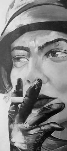 Her next collection, called “EXPRESSIONS”, consisting of 16 large-format works painted on board with oil and enamels, based on photographs by Santi Olivet, where expressions of all kinds are shown on female faces, has been exhibited in large exhibition spaces in the cities of Terrassa and Tarragona, seeing her tour interrupted as a result of the confinement caused by the COVID-19 pandemic.